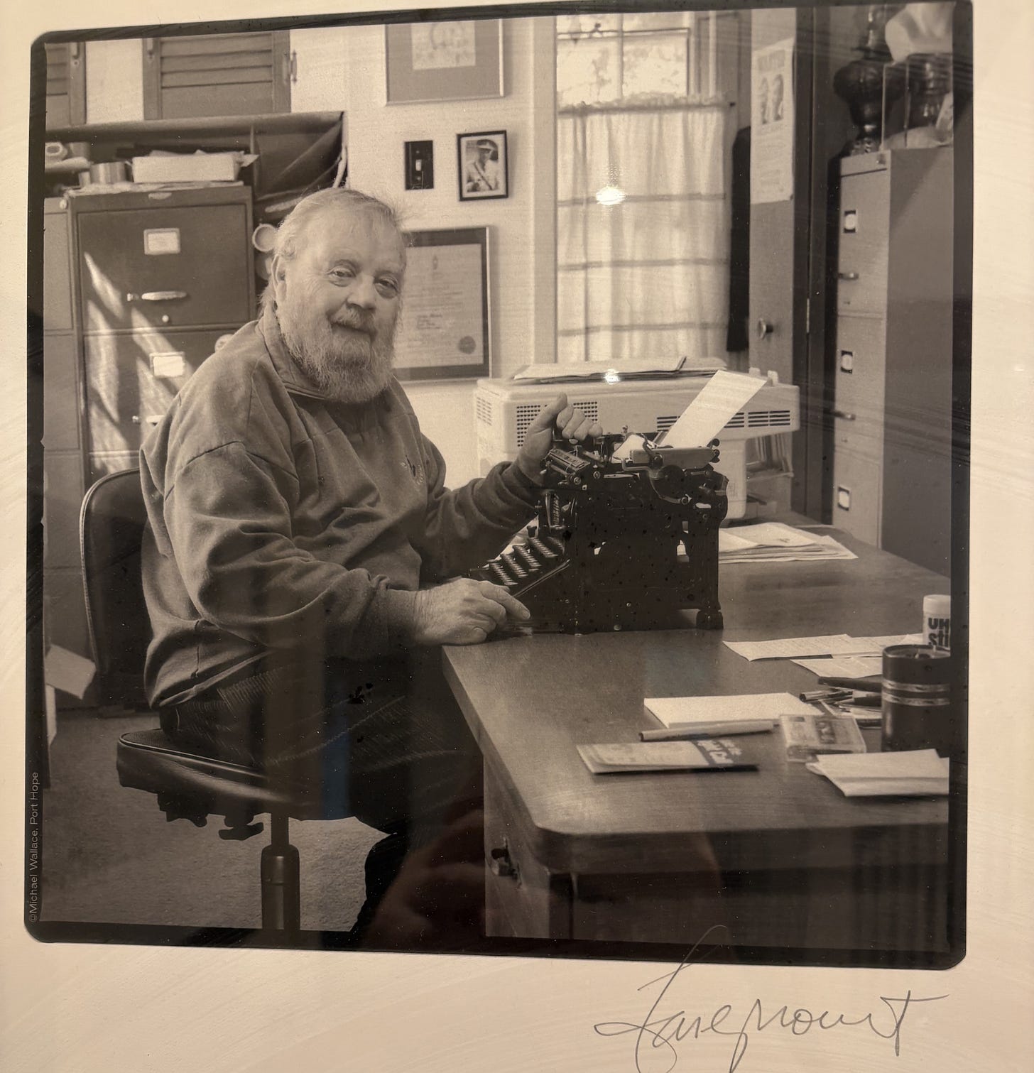 He was reading at Harbourfront in Toronto some thirty years after he had typed these manuscripts. A mutual friend, his publisher Anna Porter, tried to introduce me to Farley backstage at the event. Farley turned - we hadn’t seen each other in a decade - threw his arms around me, gave me a big kiss and said,