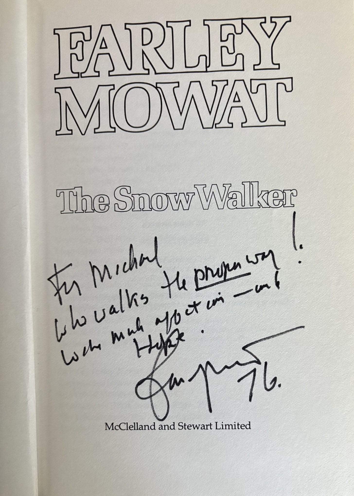 I conspired with the wonderful Rita Kurtz, the publisher’s rep who toured Farley, about when he would be coming to Manitoba next. I prevailed upon Premier Pawley, who heard me out on the story of Manitoba’s honour being tarnished by the Mowat’s rather repetitive assertion that he was owed a dollar that he never saw.